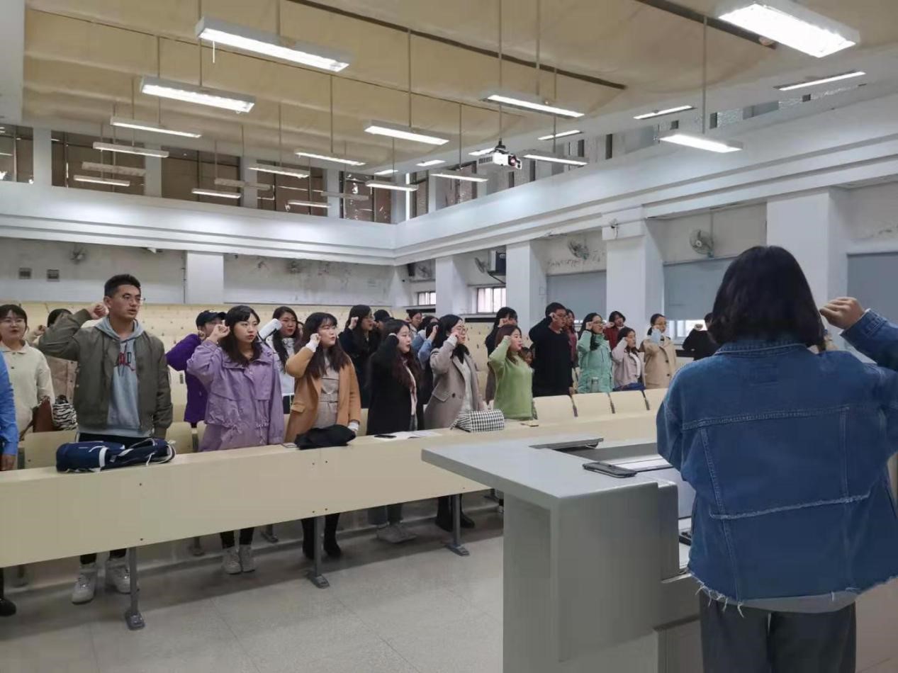 10月12日,3377官方网站_3377(中国)2019级第一、第三党支部在逸夫楼第十六阶梯教室举行了“不忘初心、牢记使命”主题教育特色系列活动之“永葆初心”——重温入党誓词活动。在第一支部党支书柳乔元的主持下,面对鲜红的党旗,全体党员庄严地举起右手,郑重宣誓。