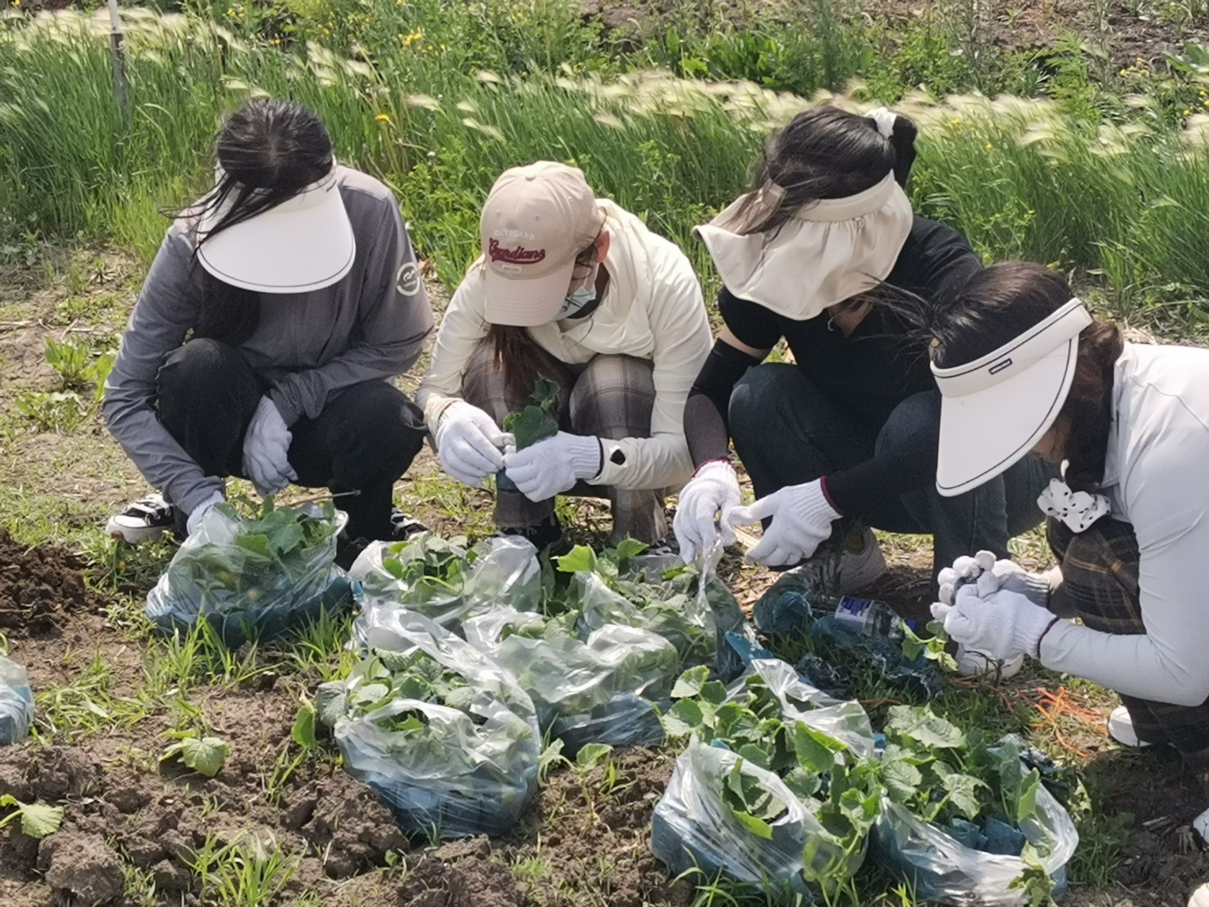 活动当天,同学们怀着满腔的热情和期待来到了吉林大学农业实验基地。在专业农技人员的指导下,近距离观察了茄子、地瓜、黄瓜等农产品的生长环境,学习种植的知识和技巧,田野上的课堂教学使同学们获益匪浅。翻土、浇水、栽苗……一项项劳动实践将活动推向高潮。在活动的整个过程中,同学们分工明确,团结协作,确保了活动的顺利进行。这次活动不仅是一次简单的劳动实践,更是一次心灵的洗礼,让同学们在劳动中感受到了党性的力量,也进一步增强大家的纪律意识。