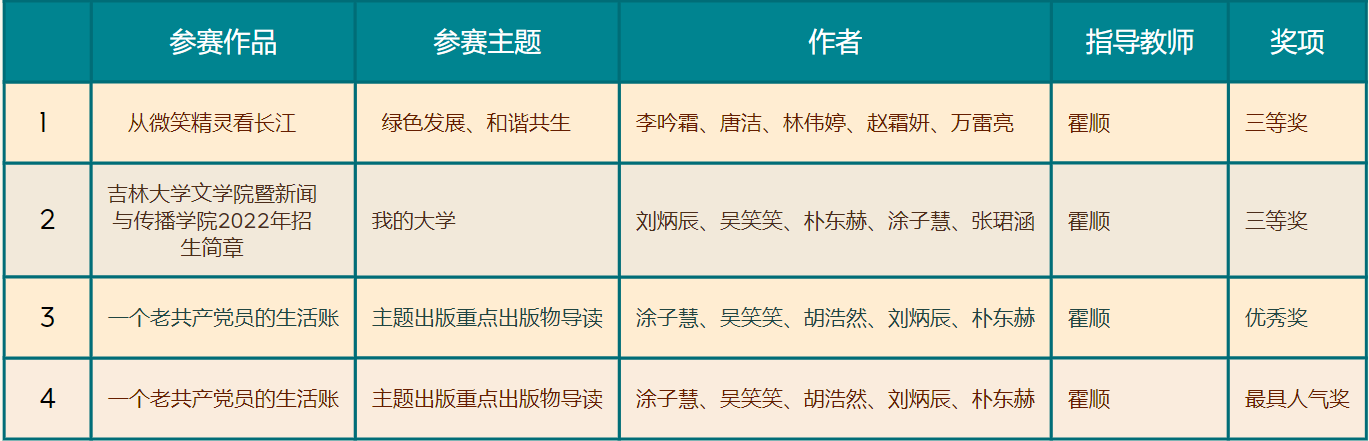 三支参赛队伍在霍顺老师的指导下,分别以“主题出版重点出版物导读”、“绿色发展、和谐共生”以及“我的大学”为主题创作了《一个老共产党员的生活账》、《从微笑精灵看长江》和《3377官方网站_3377(中国)暨新闻与传播学院2022年招生简章》三个作品。这些作品展现了我校新传学子较高的学习能力、策划合作能力以及创新实践能力。